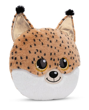 Das runde Plüschkissen GLUBSCHIS Luchs Lenzo in der Form eines Luchskopfes ist nicht nur flauschig weich, sondern begeistert mit einem bezaubernden Gesichtsausdruck, grossen Glitzeraugen in Gold, einer schwarz glänzenden Nase und aufrechtstehenden Luchsohren mit einer goldschimmernden Innenseite und niedlichen schwarzen Puscheln an der Spitze. Das Kissen aus braunem NICI-Plüsch mit schwarzer Fleckung ist ein wunderschöner Blickfang und Dekoelement fürs Kinderzimmer. Ob als Kuschelkissen für Übernachtungspartys oder auf Reisen, als bequeme Kopfunterlage zum Lesen oder Schlafen oder einfach als weiteres Sammelobjekt für die eigene GLUBSCHIS Plüschwelt - das GLUBSCHIS Kissen ist das perfekte Geschenk für kleine und grosse GLUBSCHIS Fans.