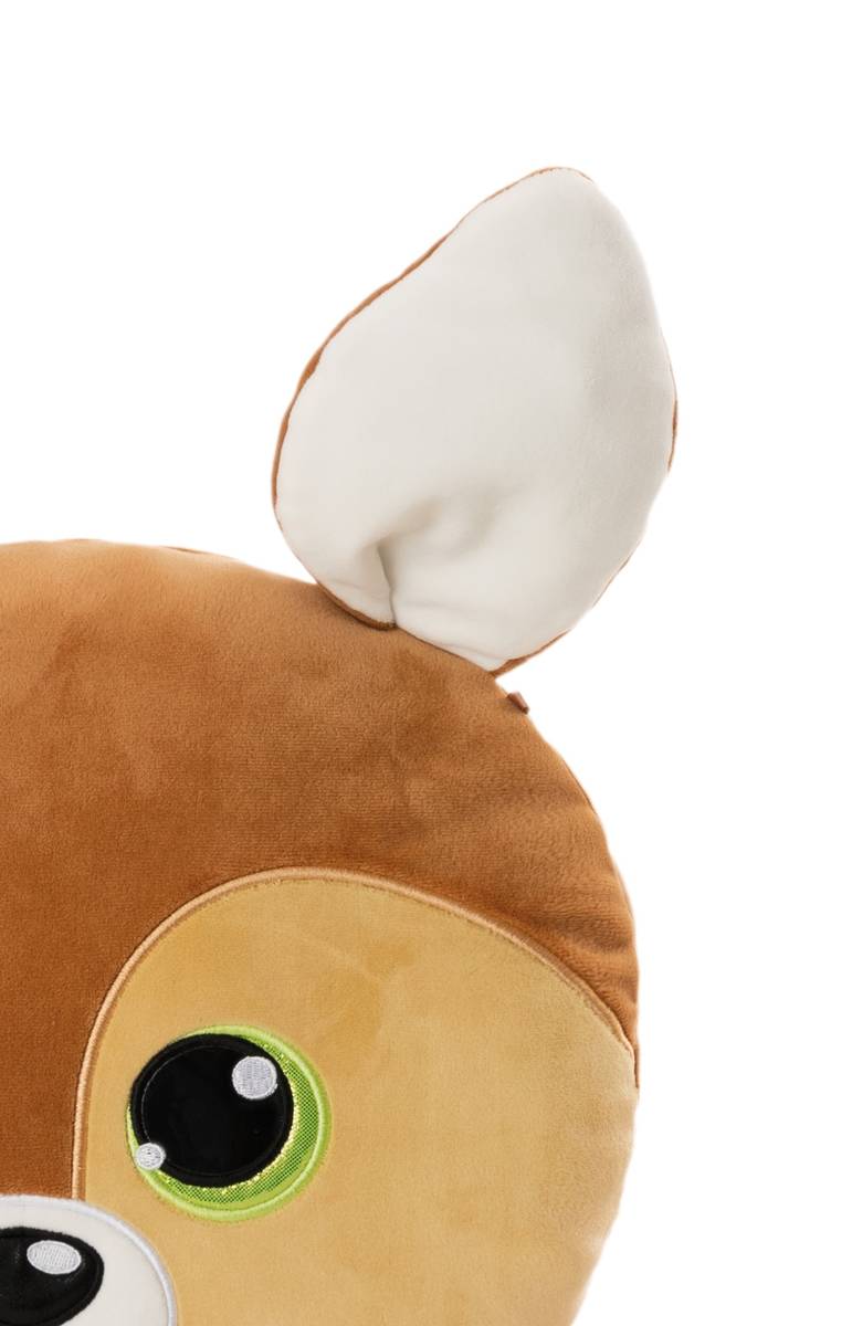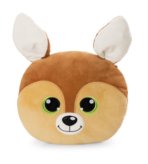 Das runde GLUBSCHIS Rehkitz Feena Kissen ist ein superflauschiger und bequemer Begleiter, der aus besonders softem NICI-Plüschmaterial gefertigt ist. In Form des entzückenden Kopfes von Rehkitz Feena ist dieses Kissen nicht nur ideal zum Kuscheln, sondern auch ein wunderschöner Blickfang und Dekoelement fürs Sofa oder Bett. Das ausgefallene Rehkitz-Kissen begeistert mit einem bezaubernden Gesichtsausdruck, grossen Glitzeraugen in Grün, einer schwarz glänzenden Nase und aufrechtstehenden Rehohren mit einer weissen Innenseite. Das Kissen aus hell- und mittelbraunem NICI-Plüsch ist Kuschelkissen für unterwegs, bequeme Kopfunterlage beim Lesen oder Schlafen oder einfach ein weiteres Sammelobjekt für die eigene GLUBSCHIS Plüschwelt. Das perfekte Geschenk für kleine und grosse GLUBSCHIS Fans. (c) 2024 Carletto, licensed by NICI GmbH