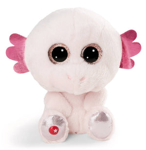 Getreu dem Motto: Beginne den Tag mit einem Lächeln, erfreuen sich Axolotl nicht nur viral auf Social Media grösster Beliebtheit. Der mexikanische Schwanzlurch mit seinem niedlichen Aussehen ist als GLUBSCHIS Plüschtier ein echtes Unikat und belebt jede GLUBSCHIS Sammlung mit seiner zartrosafarbenen Optik. Axolotl Xomo begeistert mit seinem ewig lächelnden Gesichtchen, den rosa glitzernden Kulleraugen sowie seinen Kiemen, Schwanz und Fusssohlen aus metallisch-glänzendem Stoffmaterial. Der flauschig weiche Plüschkörper mit dem NICI-Stern machen aus Axolotl Xomo ein Original GLUBSCHIS Kuscheltier für grosse und kleine Axolotlfreunde.