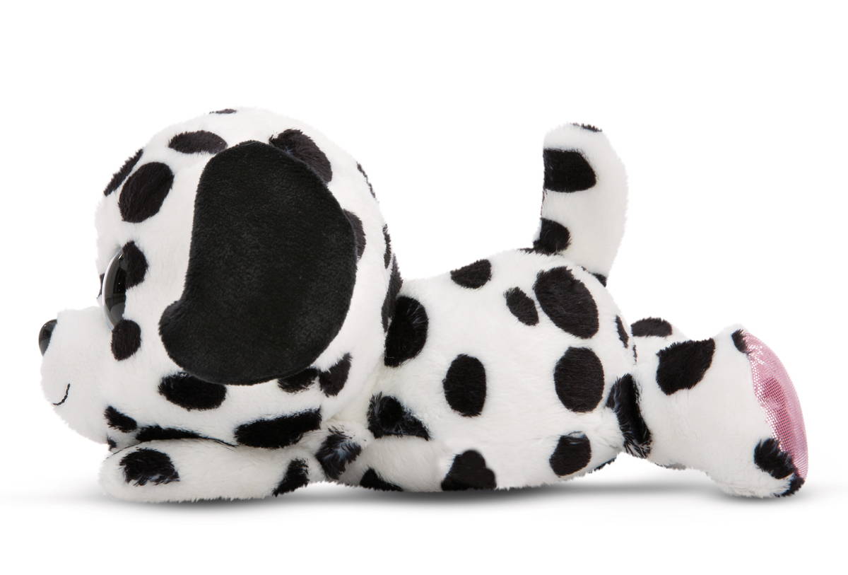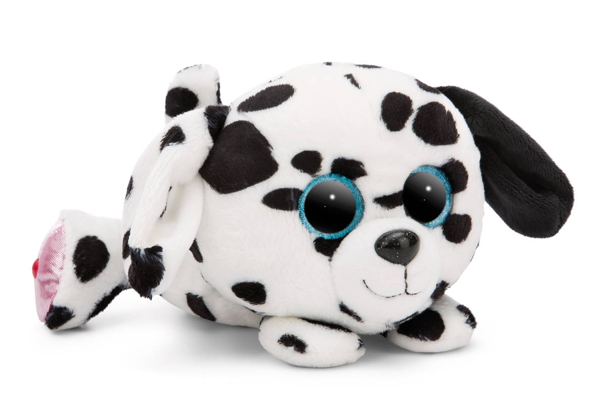 Nicht nur für Hundefreunde und GLUBSCHIS Fans! Dalmatiner Dottino punktet mit seinem kuschelweichen, weissen Plüschfell, das über und über mit den typischen, schwarzen Punkten übersät ist, seinen grossen blauen Glitzeraugen, dem bezaubernden Gesichtsausdruck und dem rosafarbenen Glitzermaterial an den Füsschen. Der 25cm grosse GLUBSCHIS Dalmatiner in liegender Ausführung ist ein wunderbares Geschenk für jeden Anlass und jedes Alter.