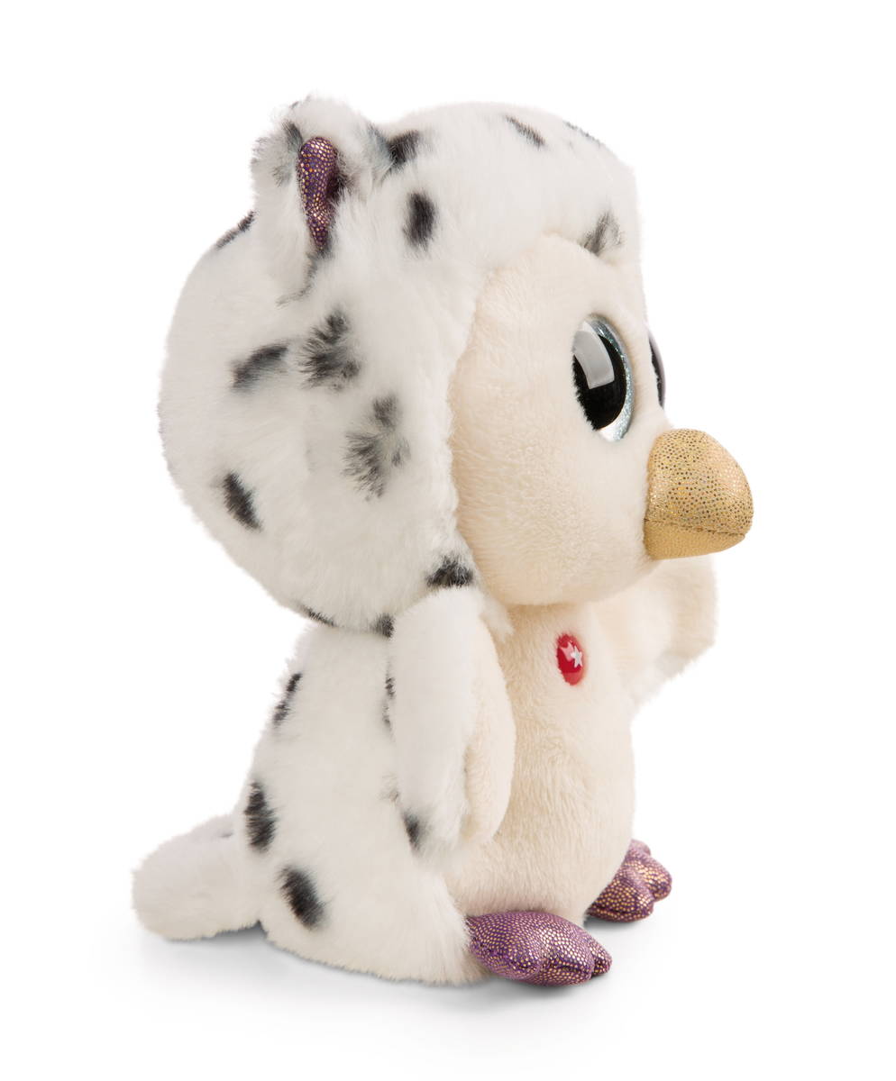 Hörst du die Glöckchen läuten? Die niedliche Plüscheule Ulula aus der GLUBSCHIS Winter Edition läutet die Winter- und Weihnachtszeit ein. GLUBSCHIS Eule Ulula verzaubert kleine und grosse Schneeeulen Fans mit ihrem weissen Plüschgefieder mit typischen, schwarzen Flecken und den grossen Glitzeraugen. Der schimmernd goldene Schnabel und pinkfarbenes Glitzermaterial an Füssen und den Innenseiten der kleinen Öhrchen lassen die Herzen von GLUBSCHIS Fans höher schlagen. Ulula gehört in die neue NICI Green Kollektion, der nachhaltigen Produktwelt von NICI! Für alle NICI Green-Produkte werden fast ausschliesslich recycelte Materialien verwendet, die hauptsächlich aus PET-Flaschen hergestellt wurden.