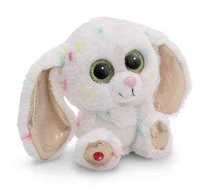 Das süsse, bezaubernde GLUBSCHIS Plüschhäschen Spottitu erobert Herzen im Sturm! Mit seinem kuschelweichen weissen Plüschfell und den bunten Tupfen ist es nicht nur ein hübscher Anblick, sondern auch unglaublich weich und anschmiegsam. Die langen Schlappohren laden zum Streicheln ein, während die grünen Glitzeraugen Spottitu einen funkelnden Blick verleihen. Die goldglänzenden Ohrinnenseiten und Fusssohlen verleihen dem 15cm grossen Häschen dabei einen Hauch von Eleganz. Der NICI Stern auf der Fusssohle von Spottitu garantiert, dass es sich um einen Original GLUBSCHIS Charakter von NICI handelt. NICI Eyes Hase Spottitu ist einfach perfekt zum Spielen, Liebhaben und Sammeln!