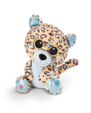 Kuscheltier Leopard Lassi von den GLUBSCHIS ist in seinem beige blau gepunktetem Fell ein echter Hingucker. Die grossen gold-glitzernden Augen und der niedliche Gesichtsausdruck machen ihn zum perfekten Kuschelfreund.