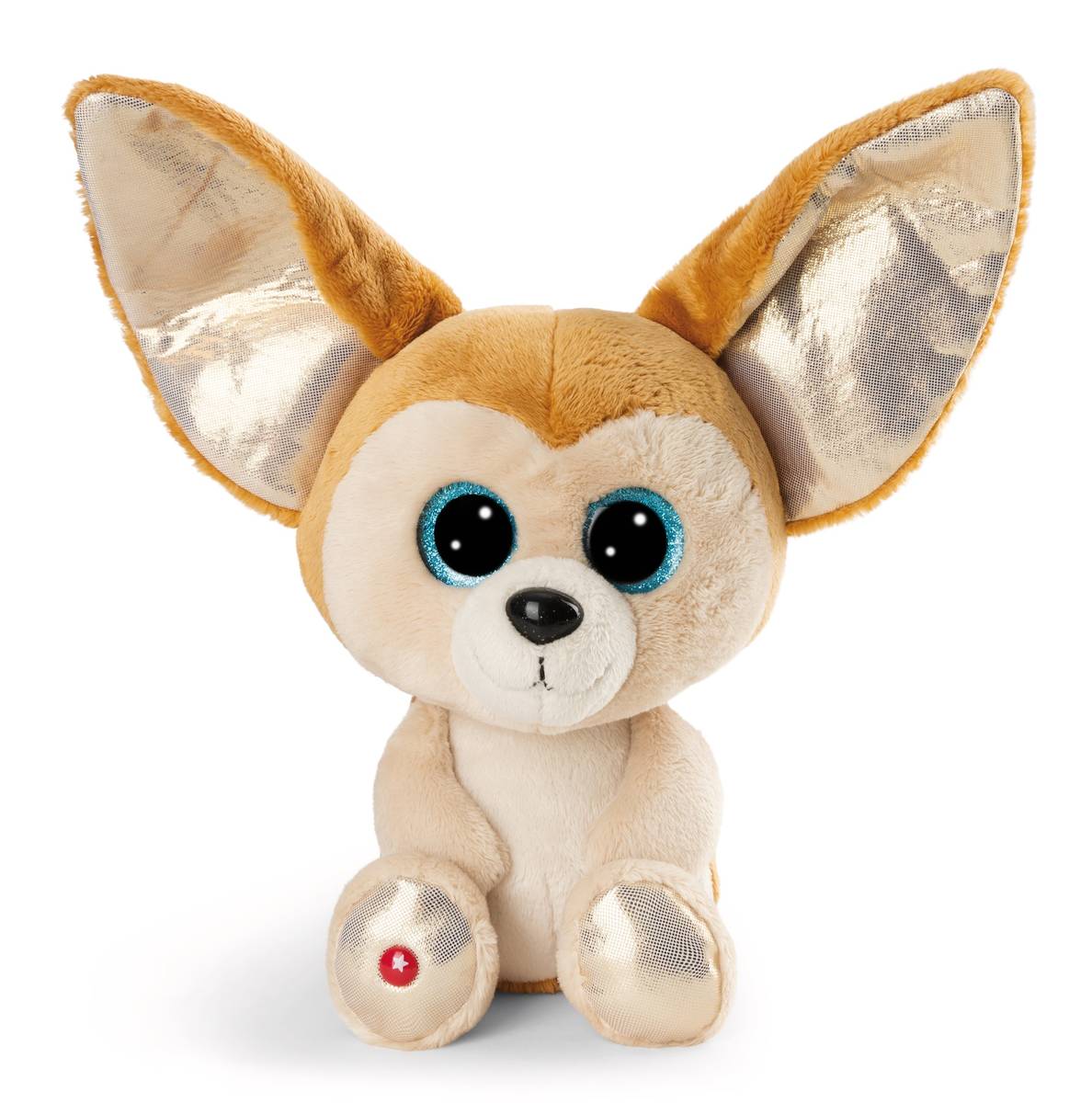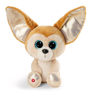Als kleinster in der Fuchsfamilie fühlt sich Wüstenfuchs Fenfen nicht nur in der Sahara wohl, sondern garantiert auch in europäischen Kinderzimmern. Sein kuschelweiches Plüschfell hat die Farbe von Wüstensand und seine riesigen, spitzen Ohren sind mit gold-glänzendem Material ausgefüttert. Der einzigartige GLUBSCHIS Wüstenfuchs begeistert zudem mit seinem niedlichen Gesichtsausdruck und den grossen blauen Glitzeraugen. Der NICI-Stern auf der Fusssohle von Fenfen garantiert, dass es sich um einen Original GLUBSCHIS Charakter von NICI handelt.
