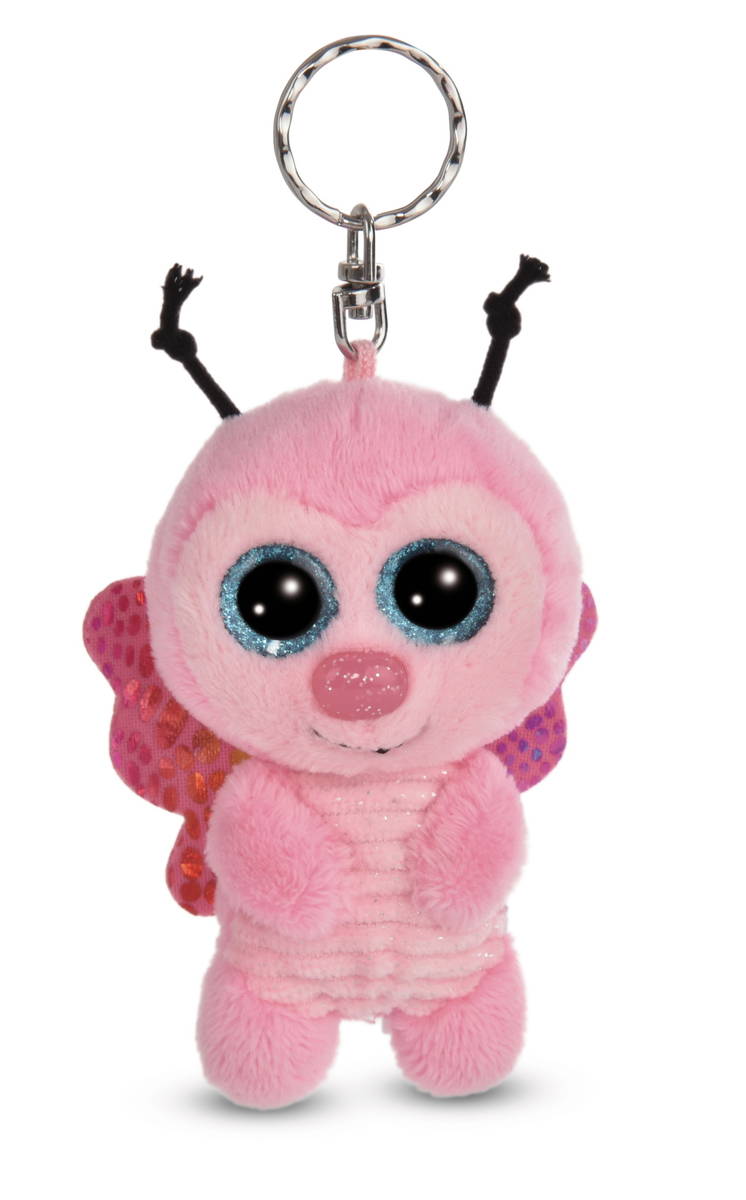 Was flattert denn da der Sonne entgegen? GLUBSCHIS Schmetterling Lilli Papilli als plüschiger Schlüsselanhänger (9cm) ist ein nettes Deko-Accessoire für den Schlüsselbund, Rucksack oder Schulranzen. Als kleines, frühlingshaftes Mitbringsel für Schmetterling Fans begeistert Lilli Papilli mit ihrem super-flauschigen rosa Plüschkörper, den grossen, blauen Glitzeraugen, den niedlichen Flügelchen sowie lustigen Fühlern in Kordeloptik. Der Anhänger verfügt über einen stabilen Schlüsselring aus Metall am Kopf des kleinen Schmetterlings.  Schlüsselanhänger GLUBSCHIS Schmetterling Lilli Papilli ist Teil der NICI GREEN Produktwelt. Für NICI GREEN Produkte verwenden wir fast ausschliesslich Plüsch- und Füllstoffe, die aus recycelten Materialien bestehen. Hierfür werden vor allem recycelte PET-Flaschen zu RPET verarbeitet.