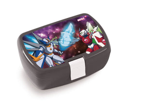 Die Brotdose Weltall macht richtig Lust auf das Pausenbrot. Auf der Vorderseite der Brotdose sind Zeichnungen von NICI Robotern zu sehen, die sich einen beachtlichen Schaukampf mit ihren Schwertern liefern. Die Brotbox ist mit einem breiten Schnappverschluss ausgestattet. So können auch kleine Kinderhänder die Box problemlos öffnen und schliessen. Damit Sie möglichst lange Freude an diesem Produkt haben und die Farben nicht verblassen, empfehlen wir Handwäsche.