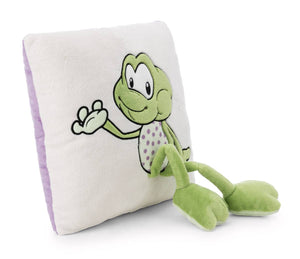 Das kuschelweiche Plüschkissen mit Fridolin Frog, dem grasgrünen Frosch aus der Forest Friends Kollektion von NICI, lädt nicht nur zum Träumen, sondern auch zum Quaken ein! Das quadratisch-praktische Prachtstück ist mit einer hochwertigen Plüschapplikation von Fridolin Frog verziert, der mit seinen langen 3D-Froschbeinen nicht nur zum Kuscheln, sondern auch zum Spielen einlädt. Wer hätte gedacht, dass ein Kissen so viel Spass machen kann? Die Rückseite in zartem Lila sorgt dafür, dass es nicht nur gemütlich ist, sondern auch stylisch aussieht - perfekt für jedes Kinderzimmer oder als fröhlicher Akzent im Wohnzimmer. Ob beim Nickerchen, beim Lesen oder einfach nur als Dekoration - das Fridolin Frog Kissen ist der ideale Begleiter für Jung und Alt. Das Kissen ist Teil der NICI GREEN Produktwelt. Für NICI GREEN Produkte verwenden wir fast ausschliesslich Plüsch- und Füllstoffe, die aus recycelten Materialien bestehen. Hierfür werden vor allem alte PET-Flaschen zu RPET verarbeitet.