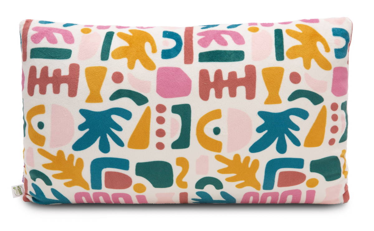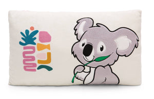 Das rechteckige, beigegrundige Plüschkissen mit einer hochwertigen Plüschapplikation von Wild Friends Koala Barry ist ein echter Blickfang in jedem Raum. Der süsse Koala hält ein aufwändig gesticktes Eukalyptusblatt in der Pfote, was seine Vorliebe für das schmackhafte Grün auch im australischen Outback unterstreicht. Das Kissen ist flauschig weich und lädt zum Entspannen und Kuscheln ein. Auf der Vorder- und Rückseite ist es zudem mit farbenfrohen, grafischen Mustern bedruckt, die aus dem Kissen ein dekoratives Home-Accessoire machen. Ein zauberhaftes Geschenk für jedes Alter und jeden Anlass, das Freude und Gemütlichkeit vereint. Das Kissen ist Teil der NICI GREEN Produktwelt. Für NICI GREEN Produkte verwenden wir fast ausschliesslich Plüsch- und Füllstoffe, die aus recycelten Materialien bestehen. Hierfür werden vor allem alte PET-Flaschen zu RPET verarbeitet.