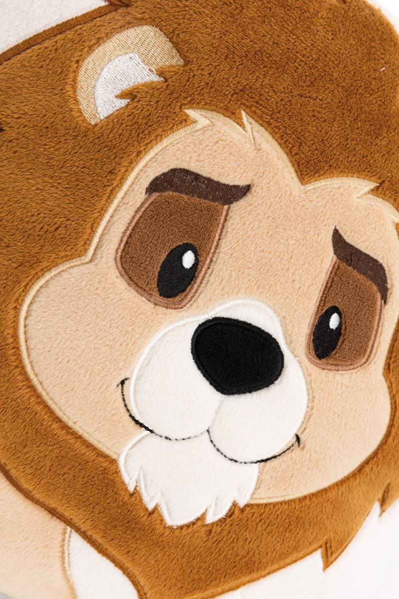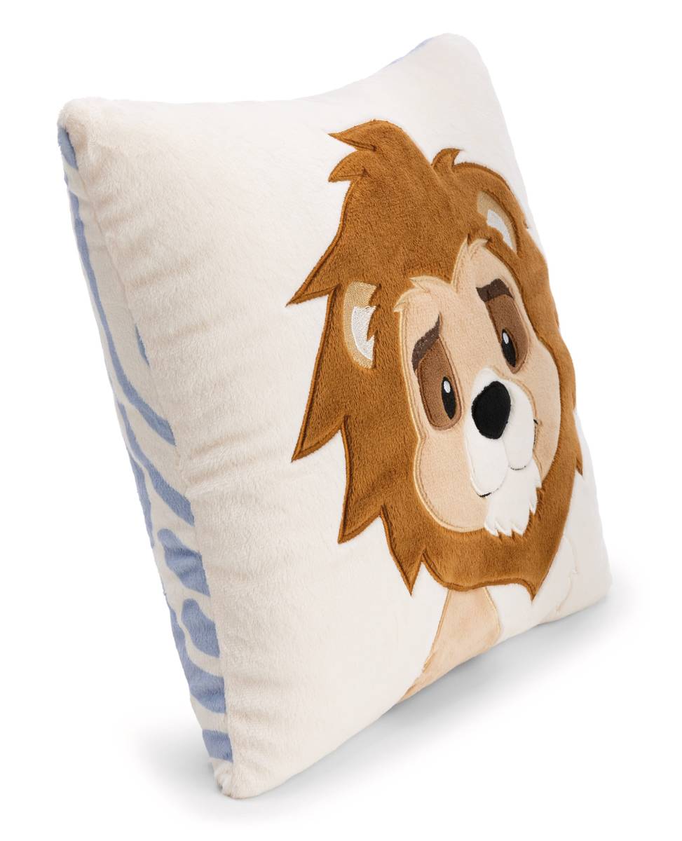 Das quadratische Plüschkissen mit dem freundlich lächelnden Löwen King Kimari auf der Vorderseite und einem pastelligen Muster auf der Rückseite verbindet liebevolles Design mit höchster Qualität und ist ein besonderer Blickfang. Die hochwertige Plüschapplikation zeigt den prächtigen Löwenkopf mit majestätischer Mähne und verleiht dem Kissen eine charmante und einladende Ausstrahlung. Es ist kuschelweich aus hochwertigem NICI-Plüsch gefertigt und lädt zum gemütlichen Anlehnen und Träumen ein. Dank seines handlichen Formats ist es der ideale Begleiter für unterwegs: Es lässt sich mühelos unter den Arm klemmen und ist somit perfekt für Reisen, Ausflüge oder einfach zum Mitnehmen im Alltag. Als liebevolles Geschenk eignet sich dieses Kissen für alle, die Komfort und fröhliches Design schätzen. Das Kissen ist Teil der NICI GREEN Produktwelt. Für NICI GREEN Produkte verwenden wir fast ausschliesslich Plüsch- und Füllstoffe, die aus recycelten Materialien bestehen. Hierfür werden vor allem alte PET-Flaschen zu RPET verarbeitet.