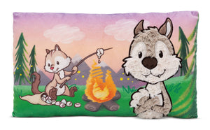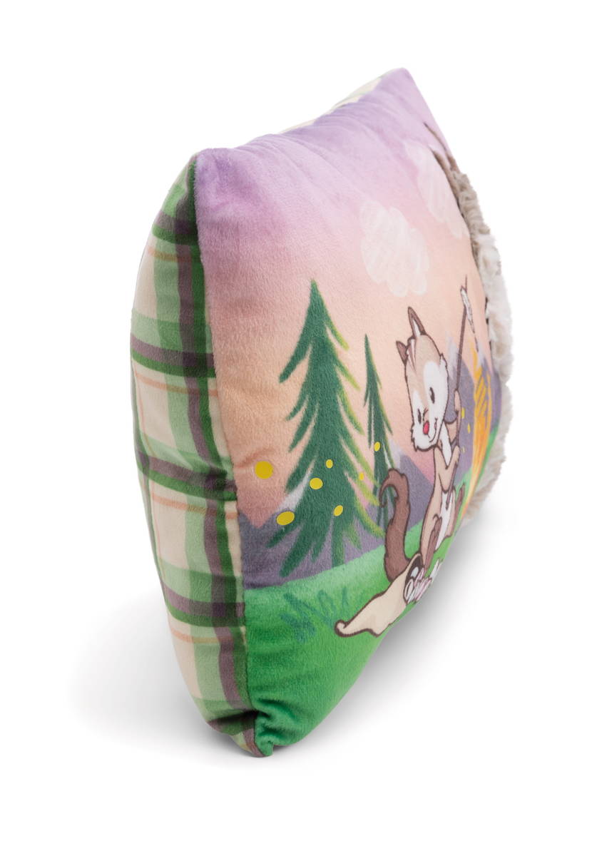 Streifenhörnchen Jojo ist ein kleiner Abenteurer, der zusammen mit Wölfin Winny Marshmallows über einer Feuerstelle grillt. Das rechteckige Kuschelkissen aus flauschig weichem NICI Plüsch begeistert mit detaillierter Charakter-Plüschapplikation und dem attraktiven Design-Druck. Die Rückseite ist in einem neutralen Karomuster gestaltet. Mit diesem farbenfrohen Kissen zaubert man Gross und Klein ein Funkeln in die Augen. Ein wunderschönes Accessoire für Bett, Sofa und Sessel! Das Kissen ist Teil der NICI GREEN Produktwelt. Für NICI GREEN Produkte verwenden wir fast ausschliesslich Plüsch- und Füllstoffe, die aus recycelten Materialien bestehen. Hierfür werden vor allem alte PET-Flaschen zu RPET verarbeitet.