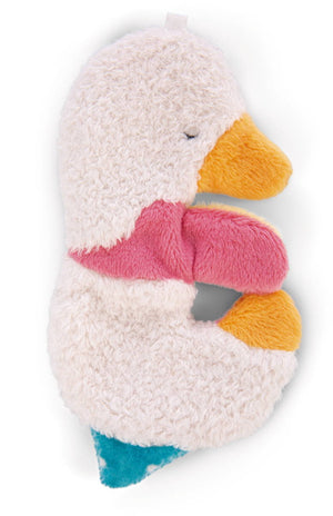 Knistertier Gans Gilli aus der MyFirst NICI Kollektion ist Spielgefährte und Schmuseliebling in einem. Die kuschelige Knister-Gans darf in keinem Kinderwagen und auf keiner Spieldecke fehlen. Das super-softe Plüschmaterial und das beidseitige, zauberhafte Design der schlafenden, weissen Gans überzeugt in perfekter Grösse und Haptik. Die Knistereffekte schaffen Anreiz für Babys zum Tasten, Fühlen und Greifen. Eine zauberhafte Geschenkidee für den Start ins Leben!