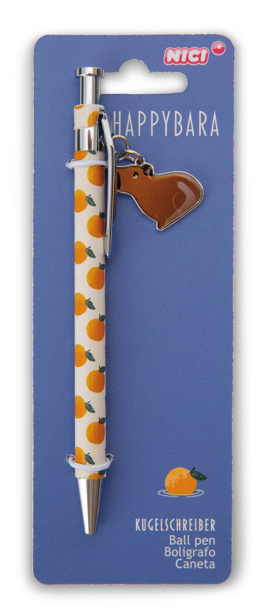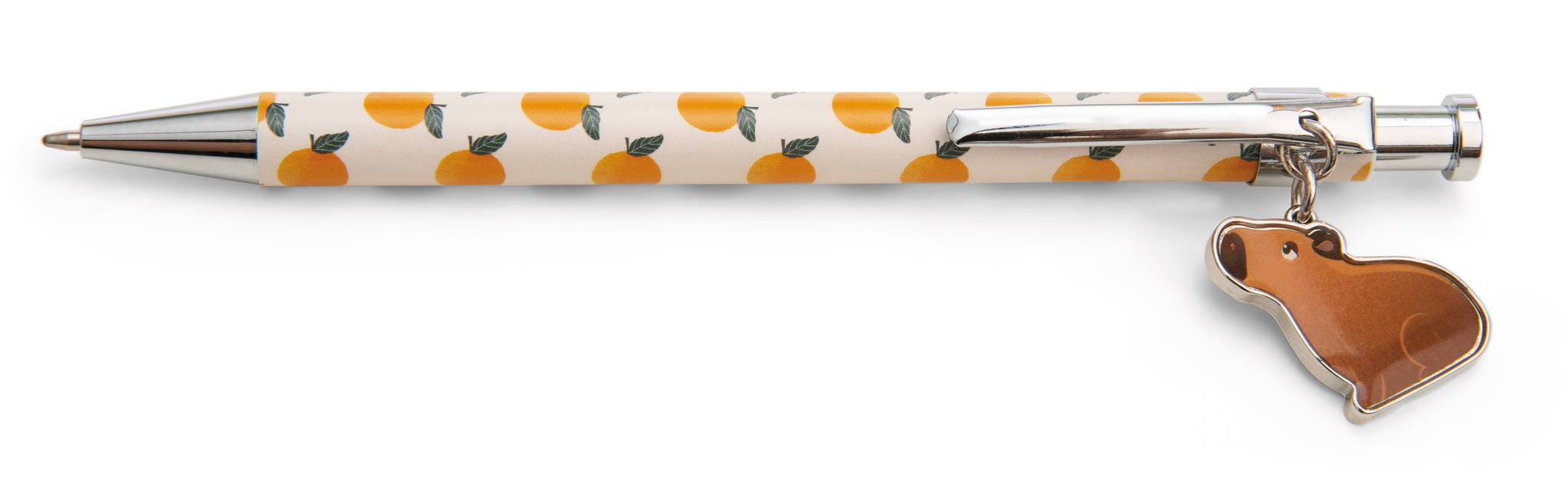 Den erfrischend fruchtigen Kugelschreiber im Orangen-Design und einem Capybara Charm-Anhänger aus Metall will garantiert jeder immer gern bei sich zu tragen. Ein süsses Schreibutensil für die Schule, Uni oder für das Büro. Der Kugelschreiber liegt leicht in der Hand und ist daher ein wunderbarer Begleiter für den täglichen Gebrauch im Alltag. So macht das Schreiben von Notizen erst richtig Spass. Perfekt für alle Capybara Fans!