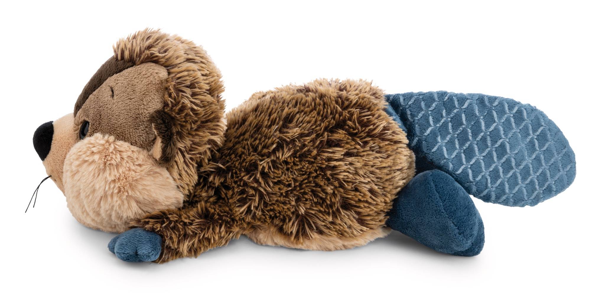 Der supersüsse Biber Harry Woodsnacker liebt es zu kuscheln. Nach einem ausgelassenen Spiel ist Schlafen seine Lieblingsbeschäftigung. Harrys flauschig weicher Plüschkörper mit verschiedenen Plüschmaterialien ist naturgetreu in Brauntönen gehalten. Sein putziges Gesichtchen mit kleinen Augen, Schnurrhaaren am Mäulchen, aus dem zwei weisse Nagezähne herausschauen, und die niedlichen Öhrchen machen ihn zu einem unwiderstehlich süssen Kuscheltier für Plüschtierfans jeden Alters. Sein breiter, blauer Biberschwanz aus Effektplüsch und die blau abgesetzten Pfötchen und Füsse setzen farbliche Akzente. Gemütlich auf dem Bauch liegend ist Harry Woodsnacker ein bezauberndes Geschenk für sich selbst oder für Liebhaber ausgefallener Plüschtiere. Der Biber ist Teil der NICI GREEN Produktwelt. Für NICI GREEN Produkte verwenden wir fast ausschliesslich Plüsch- und Füllstoffe, die aus recycelten Materialien bestehen. Hierfür werden vor allem alte PET-Flaschen zu RPET verarbeitet.