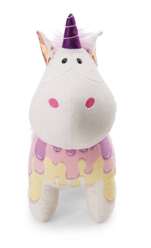 Das zauberhafte Einhorn Sweety Rainbow ist mit seiner Grösse und seiner stehenden Form das perfekte Kuscheltier für kleine und grosse Einhornfans! Das süsse und äusserst dekorative Plüsch-Einhorn ist nicht nur ideal zum Kuscheln, Schmusen und Liebhaben, sondern auch ein treuer Begleiter beim Spielen und Einschlafen. Mit seinem farbenfrohen Candy-Look zieht Sweety Rainbow alle Blicke auf sich. Der pastellfarbene Plüschkörper ist liebevoll mit bunten Zuckerstreuseln und einer verführerischen Sirupsauce bedruckt, was ihm einen einzigartigen und magischen Charme verleiht. Glitzernde lila und goldene Akzente, eine buschige Mähne und ein flauschiger Schweif machen dieses Einhorn zu einem echten Highlight. Ein aufgesticktes Bonbon auf der Flanke rundet das zauberhafte Design ab und lässt die Herzen aller Fabelwesen-Fans höher schlagen. Einhorn Sweety Rainbow ist Teil der NICI GREEN Produktwelt. Für NICI GREEN Produkte verwenden wir fast ausschliesslich Plüsch- und Füllstoffe, die aus recycelten Materialien bestehen. Hierfür werden vor allem alte PET-Flaschen zu RPET verarbeitet.