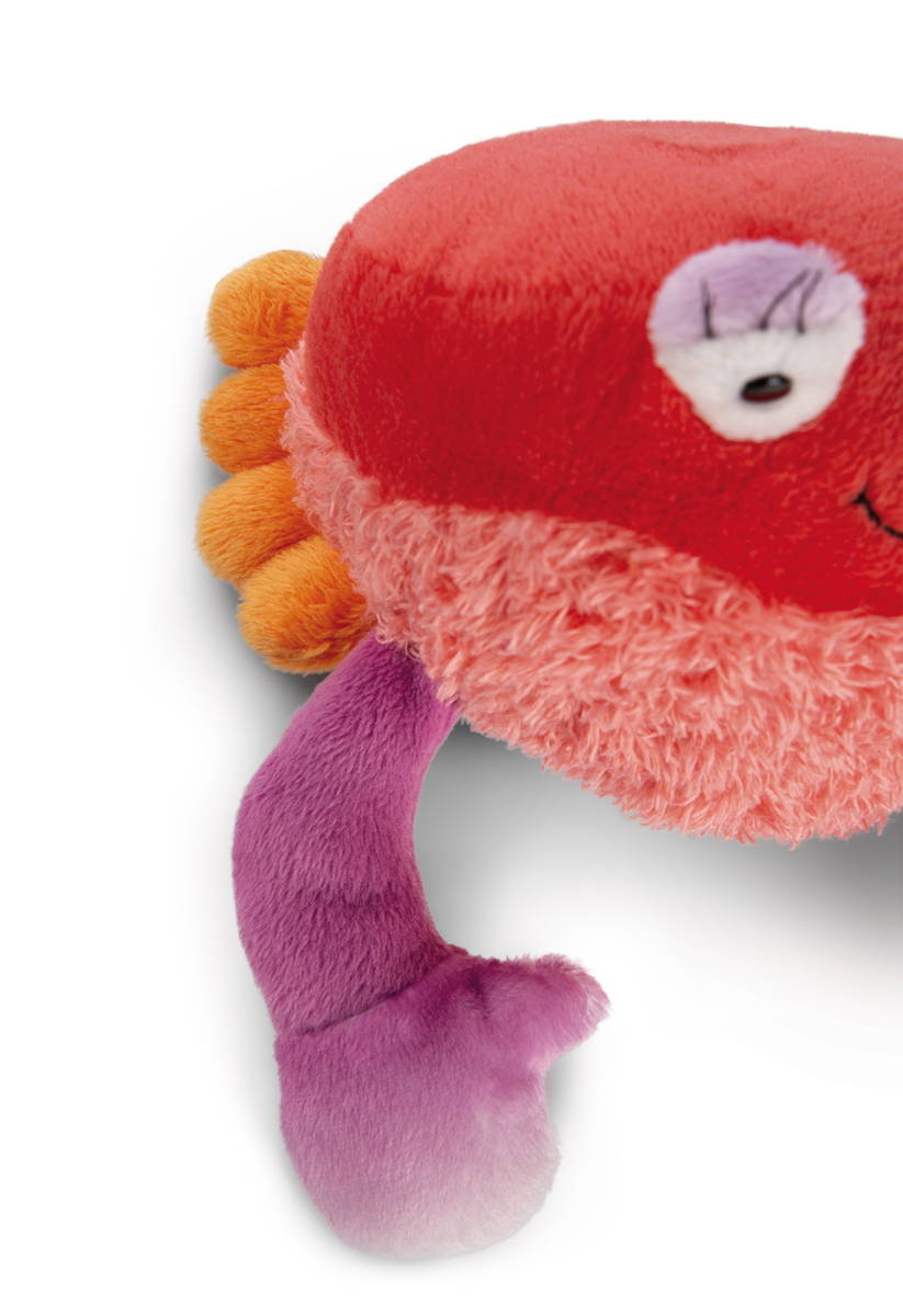 Ursprünglich in den Tiefen der Meere zu finden, wird Krabbe Seabelle als zauberhaftes NICI-Plüschtier schnell zum Lieblingsfreund und Spielgefährte von kleinen Unterwasserfans. Die fröhlich colorierte Krabbe im aufregenden Materialmix ist eine wahre Schönheit. Mit ihren beeindruckend langen Wimpern an den emporstehenden Augen verzaubert sie Jung und Alt. Ihr Panzer aus hellorange-farbenem und unterschiedlich langem Plüsch, die violetten Scherenzangen und ihr fröhlicher Gesichtsausdruck machen den Spiel- und Kuschelspass perfekt. Krabbe Seabelle ist Teil der NICI GREEN Produktwelt. Für NICI GREEN Produkte verwenden wir fast ausschliesslich Plüsch- und Füllstoffe, die aus recycelten Materialien bestehen. Hierfür werden vor allem alte PET-Flaschen zu RPET verarbeitet.
