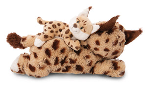 Mama Luchs kommt nicht allein. Nein, Lyka bringt gleich ihr Baby mit! Luchs Mutter Lyka (40cm) und ihr Luchskind (20cm) sind aus flauschig weichem Plüsch und artgerecht mit einer gefleckten Fellzeichnung versehen. Die niedliche Mimik, die liebevollen Details und das einzigartige Design lassen Mama und Kind richtig lebendig wirken und laden zum Knuddeln und Spielen ein. Ein zauberhaftes Geschenk für Fans ausgefallener Kuscheltiere und auch als Dekoration im Kinderzimmer ein echtes Highlight. Die Kuscheltier Luchse sind Teil der NICI GREEN Produktwelt. Für NICI GREEN Produkte verwenden wir fast ausschliesslich Plüsch- und Füllstoffe, die aus recycelten Materialien bestehen. Hierfür werden vor allem alte PET-Flaschen zu RPET verarbeitet.