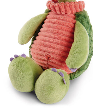 Die freche, kleine Schildkröte Tateus ist alles andere als langweilig! Ihr fröhlicher Gesichtsausdruck mit den grossen Augen, der realistisch bedruckte Panzer aus kuschelweichem NICI-Plüsch, ihr orangefarbener Bauch im spannenden Material-Mix, die violetten Zehen und der lustige Haarpuschel auf dem Kopf, machen aus Tateus den idealen Spielgefährten, der zudem ausgiebiges Knuddeln liebt. Schildkröte Tateus ist Teil der NICI GREEN Produktwelt. Für NICI GREEN Produkte verwenden wir fast ausschliesslich Plüsch- und Füllstoffe, die aus recycelten Materialien bestehen. Hierfür werden vor allem alte PET-Flaschen zu RPET verarbeitet.