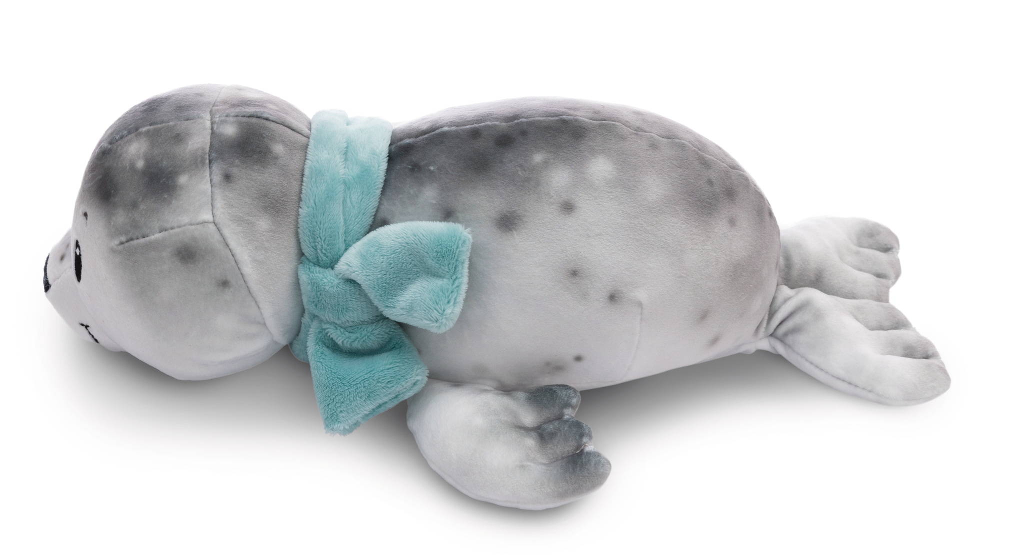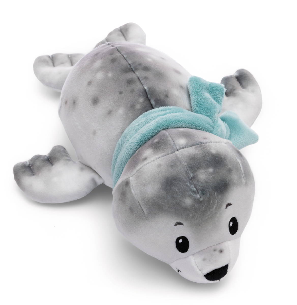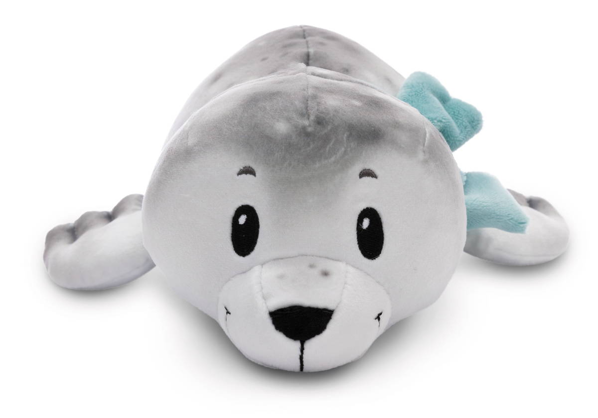 Durch das super softe Stretchplüsch-Material wird der witzige Seehund Bente zum einzigartigen Spiel- und Kuschelfreund. Der liegende Seehund begeistert mit seinem naturgetreuen, grau bedruckten, kuschelweichen Plüschkörper, sanft blickenden schwarzen Augen, einer gestickten Nase und einem Mund mit angedeuteten Barthaaren. Der türkise Schal um seinen Hals sorgt für einen farblichen Akzent und lässt Seehund Bente mollig warm in deinem Arm liegen.