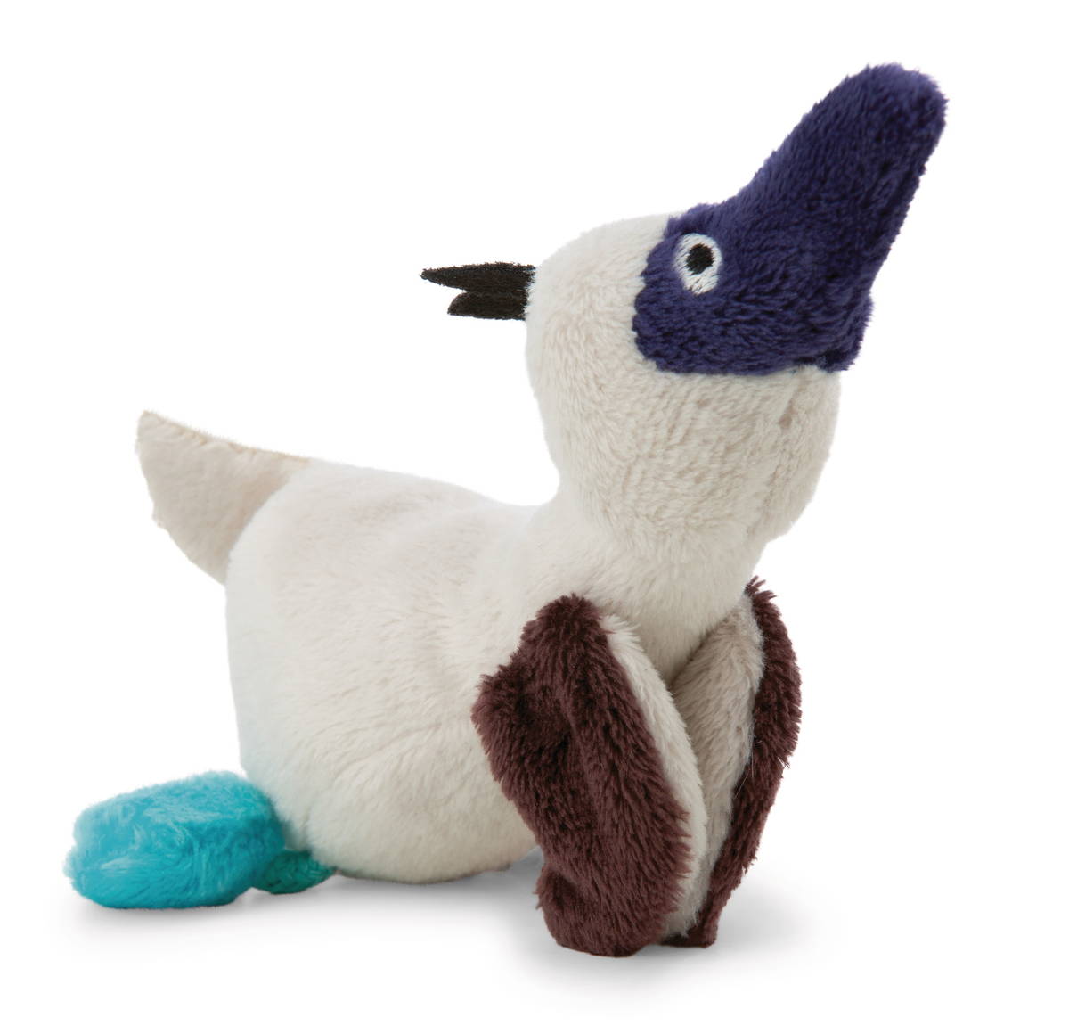 Blaufusstölpel Sula aus der Wild Friends Kollektion von NICI ist nicht nur niedlich anzusehen, sondern auch äusserst praktisch als MagNICI. Mit seinen Magneten in Flügelchen haftet der tropische Meeresvogel an allen metallischen Oberflächen. Ob an Kühlschranktüren, Türrahmen oder Magnetboards - der plüschige Blaufusstölpel-Magnet sorgt nicht nur für eine niedliche Dekoration, sondern hilft auch dabei, Notizen und Fotos sicher zu fixieren. Mit einem charmanten Aussehen und funktionalen Eigenschaft ist Sula das perfekte Accessoire für alle, die gerne Ordnung halten und dabei nicht auf süsse Plüschtiere verzichten möchten. Der MagNICI ist Teil der NICI GREEN Produktwelt. Für NICI GREEN Produkte verwenden wir fast ausschliesslich Plüsch- und Füllstoffe, die aus recycelten Materialien bestehen. Hierfür werden vor allem alte PET-Flaschen zu RPET verarbeitet.