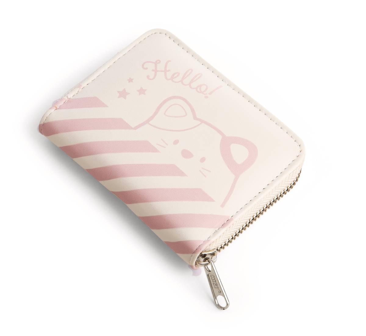 Die bezaubernde mymochi Geldbörse ist nicht nur praktisch, sondern auch ein echter Hingucker! Aus strapazierfähigem Polyester-Material gefertigt, bietet die Geldbörse eine perfekte Kombination aus Langlebigkeit und Stil. Das mädchenhafte Design in zarten Rosa- und Cremetönen wird durch die süsse Katze Angy auf der Vorderseite aufgelockert. Der verspielte Hello"-Schriftzug und das Sternenmuster verleihen dem Portemonnaie eine charmante Note. Das Portemonnaie ist mit einem Reissverschluss sowie drei praktischen Fächern - eines davon speziell für Münzen - versehen. Ob für den Alltag oder besondere Anlässe, der mymochi Geldbeutel ist das ideale Accessoire für echte Trendsetterinnen.