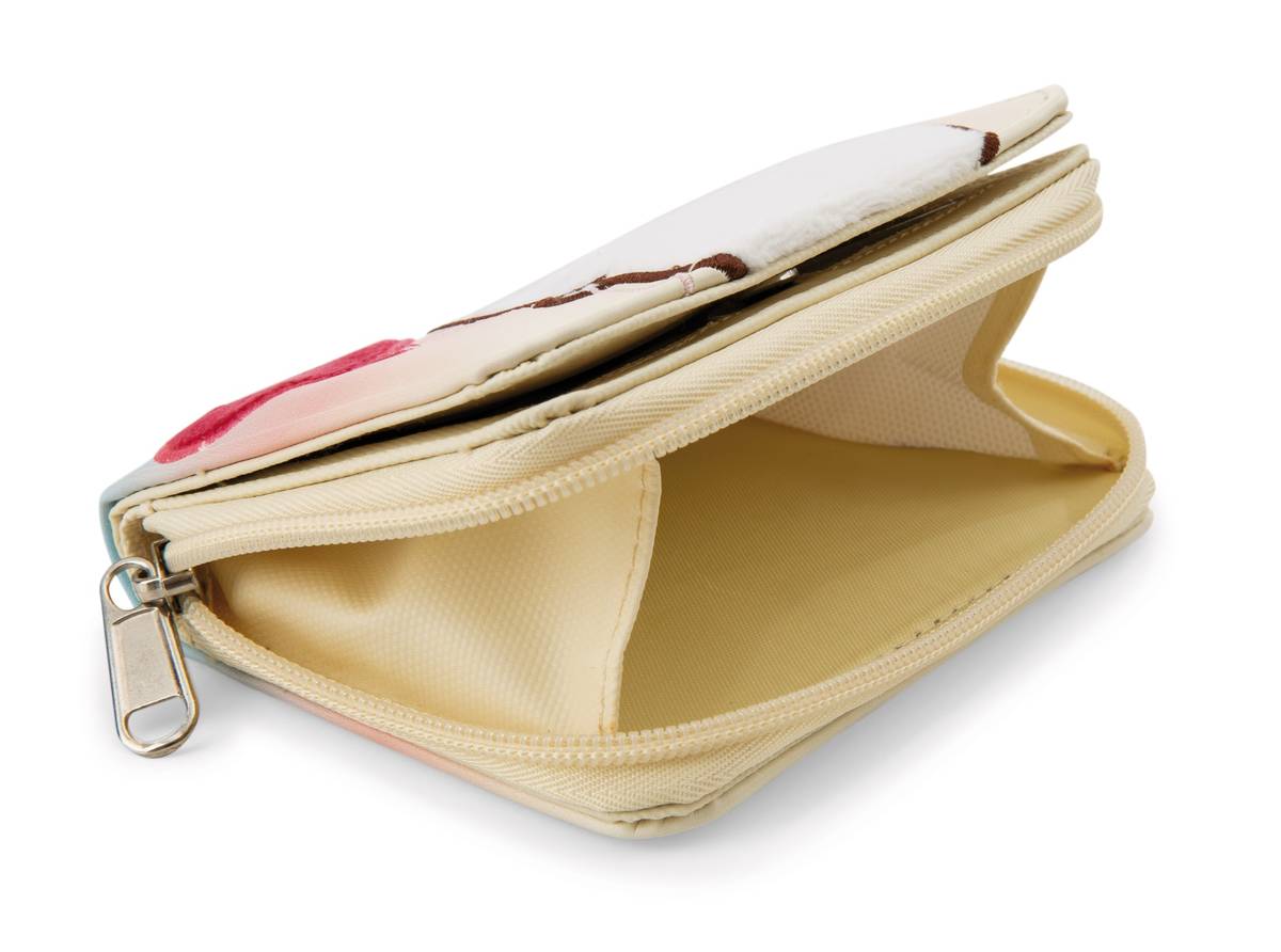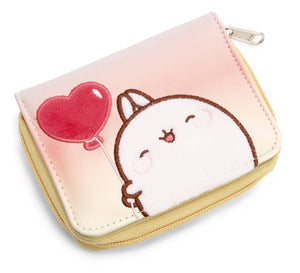 Der handliche Geldbeutel im bezaubernden MOLANG Design begeistert mit einem pastellfarbenen Hintergrund mit einem niedlichen Molang, dem liebenswerten Charakter aus der gleichnamigen TV-Serie und bekannt bei Kids und jungen Erwachsenen aus Social Media. Molang, der einen roten Herzballon in den Händen hält, ist als aufwändige Plüsch-Applikation ein echter Blickfang. Der Geldbeutel aus strapazierfähigen PU-Material ist zugleich stylisch und praktisch, bietet er doch ausreichend Platz für Münzgeld, Scheine und Karten, die allesamt mit Hilfe eines Reissverschlusses sicher verwahrt sind. Mit seiner hochwertigen Verarbeitung ist er das perfekte Accessoire für alle kleinen und grossen MOLANG Fans.