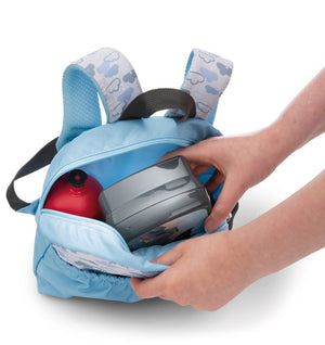 Wer geht schon gerne ohne sein liebstes Kuscheltier aus dem Haus? Mit dem NICI Rucksack im hellblauen Wölkchen Design wird zauberhaftes Kuschelvergnügen mit der Funktionalität eines geräumigen Kinderrucksacks verbunden. Ein einzigartiger Roter Panda aus flauschig weichem NICI-Plüsch ist in einer separat befestigten Sitztasche mit Gummizug fixiert und schaut sich die Welt vom Rücken des Kindes mit an. Das 25cm grosse Plüschtier kann dabei kinderleicht zum Schmusen, Spielen und Liebhaben herausgenommen werden. Für einen guten Tragekomfort dienen gepolsterte und verstellbare Schultergurte sowie ein angenehm weicher Rückenbereich in bewährter NICI-Qualität. Der Rucksack, mit integriertem Namensschild, ist ein wundervolles Geschenk und idealer Begleiter für alle kleinen Abenteurer, Weltentdecker und Backpacker.