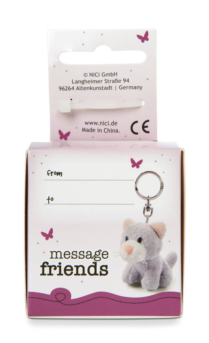 Das niedliche, graue Kätzchen mit den süssen NICI Knopfaugen ist aus einem kuschelweichem Plüschmaterial gefertigt und trägt an ihrem Kopf einen stabilen Schlüsselring mit NICI Logo. Sie freut sich, wenn sie an Rucksäcken, Taschen oder Schulranzen begleiten kann. Ob zum Geburtstag, als Glücksbringer oder als süsses Mitbringsel - die Katze präsentiert sich in einer aufwändig und mit viel Liebe gestalteten Geschenkverpackung, die auf der Rückseite individuell beschriftet werden kann. Mit der Botschaft Danke!" ist der Plüschkätzchen Anhänger eine gelungene Geschenkidee für einen lieben Menschen, bei dem man sich bedanken möchte.