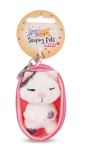 Miau - bin ich müde! Das niedliche, gefleckte Katzen-Baby begeistert mit süssen Schlafaugen und einem flauschigweichen Plüsch, aus dem es gefertigt ist. Detailverliebt ist auch das separate, pinkfarbene Plüschkörbchen, in dem es sich das Kätzchen bequem gemacht hat. Der stabile Schlüsselring des 8 cm grossen Schlüsselanhänger Sleeping Pets Katze sorgt für einen sicheren Halt am Schlüssel, Rucksack oder Schulranzen. Ab sofort ist das schlafende Kätzchen eine treue Begleiterin für kleine und grosse Katzenkinder-Fans. Ob zum Geburtstag, als Glücksbringer oder kleines Mitbringsel - die Sleeping Pets Katze ist immer eine gelungene Geschenkidee.