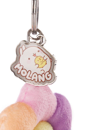Der Regenbogenblume Schlüsselanhänger aus der MOLANG Kollektion von NICI ist das perfekte Geschenk für jeden Anlass und jedes Alter. Die pastellfarbene Regenbogenblume mit dem freundlichen Gesichtchen hält als flauschig weicher Schlüsselanhänger die Schlüssel zusammen und ist als Deko für Tasche, Rucksack oder Schulranzen ein echter Hingucker. An dem stabilen Schlüsselring aus Metall ist ein kleiner Charm-Anhänger mit Molang und dem besten Freund Piu Piu befestigt.