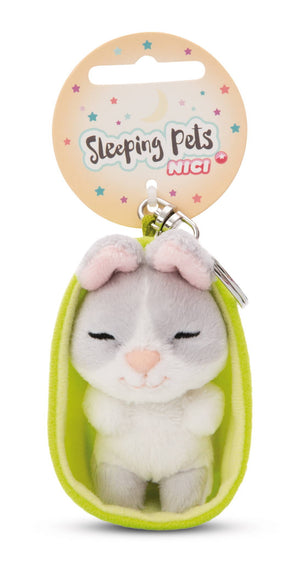 Wie süss! Das graue Häschen mit aufwändig gestickten Schlafaugen, einem weissen Bäuchlein, langen Hasenohren und einem extrem niedlichen Gesichtchen hat sich in sein grasgrünes Plüschkörbchen behaglich eingekuschelt. Das schlafende Häschen aus softig weichen NICI-Plüsch kann als 8cm grosser Schlüsselanhänger dank eines stabilen Schlüsselrings aus Metall am Schlüsselbund, Rucksack, Schulranzen und Co. befestigt werden. Ein zauberhaftes Geschenk für kleine und grosse Plüsch-Fans. Der Sleeping Pets Schlüsselanhänger ist Teil der NICI GREEN Produktwelt. Für NICI GREEN Produkte verwenden wir fast ausschliesslich Plüsch- und Füllstoffe, die aus recycelten Materialien bestehen. Hierfür werden vor allem recycelte PET-Flaschen zu RPET verarbeitet.