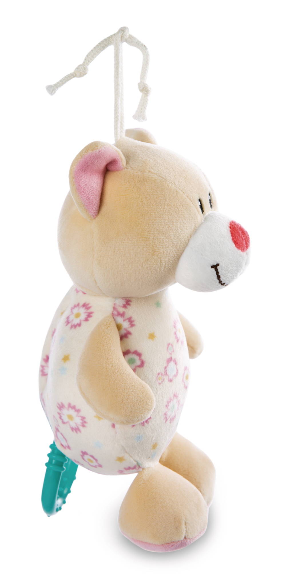 Die plüschige Spieluhr in Gestalt einer bezaubernden Kuschelkatze im rosafarbenen Pyjama ist ein unverzichtbares Geschenk zur Geburt oder Taufe. Zieht man an dem kleinen Ring, der mittels einer Schnur am softig weichen Körper des 18 cm grossen Kätzchens befestigt ist, kommt die eingearbeitete Spieluhr zum Einsatz und Baby wird mit der Melodie Weisst du, wie viel Sternlein stehen" ins Reich der Träume begleitet. Mithilfe von zwei Bändchen lässt sich die Spieluhr ganz einfach am Bettchen, Kinderwagen oder Babyschale befestigen. Die Spieluhr Katze aus der MyFirstNICI Kollektion ist eine tolle Einschlafhilfe und fördert gleichzeitig motorische und sensorische Fähigkeiten der Allerkleinsten.