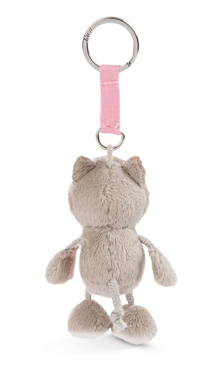 Alles Liebe" wünscht dir die Talismini Katze. Als Schlüsselanhänger mit praktischem rosa-farbenen Gewebeband, das mit Herzchen verziert ist, freut sie sich darauf dich in deinem Alltag zu begleiten und dir Glück zu bringen. Egal ob an Schlüsselbund, Rucksack oder Handtasche die graue NICI Katze macht überall eine gute Figur.