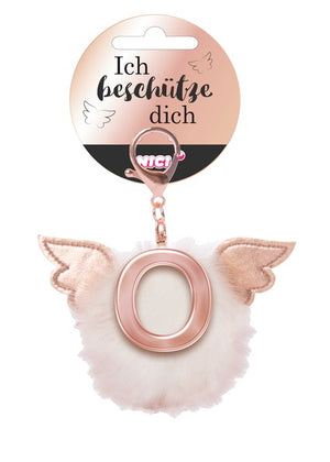 Der Taschenanhänger mit dem Slogan "Ich beschütze dich", trägt den Buchstaben O. Der Plüschbommel und die schimmernden Flügelchen machen den Schutzbommel von NICI zu einem trendigen Begleiter.