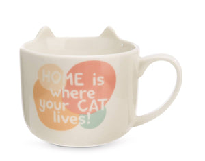 Die Porzellantasse aus der Homies Kollektion von NICI ist nicht nur funktional, sondern lässt auch das Herz eines jeden Katzenliebhabers höher schlagen. Die Tasse fasst 350ml Flüssigkeit und ist ein wahres Kunstwerk. Ihr Design zeigt das Gesicht einer gefleckten Glückskatze, deren lebhafte Augen sofort gute Laune verbreiten. Die Katzenohren ragen über den Tassenrand hinaus und verleihen der Tasse einen einzigartigen, dreidimensionalen Look. Die Rückseite ist mit einem grafischen Muster in sanften Pastellfarben und dem Spruch: Home is where your cat lives." verziert. Dieser Satz drückt die unbestreitbare Wahrheit aus, dass unser Zuhause durch die Anwesenheit unserer pelzigen Freunde erst richtig lebendig wird. Perfekt für eine gemütliche Tasse Tee, Kakao oder Kaffee am Morgen bringt die Glückskatzen Tasse nicht nur Freude beim Trinken, sondern auch beim Anschauen. Ein ideales Geschenk für alle Katzenfreunde!