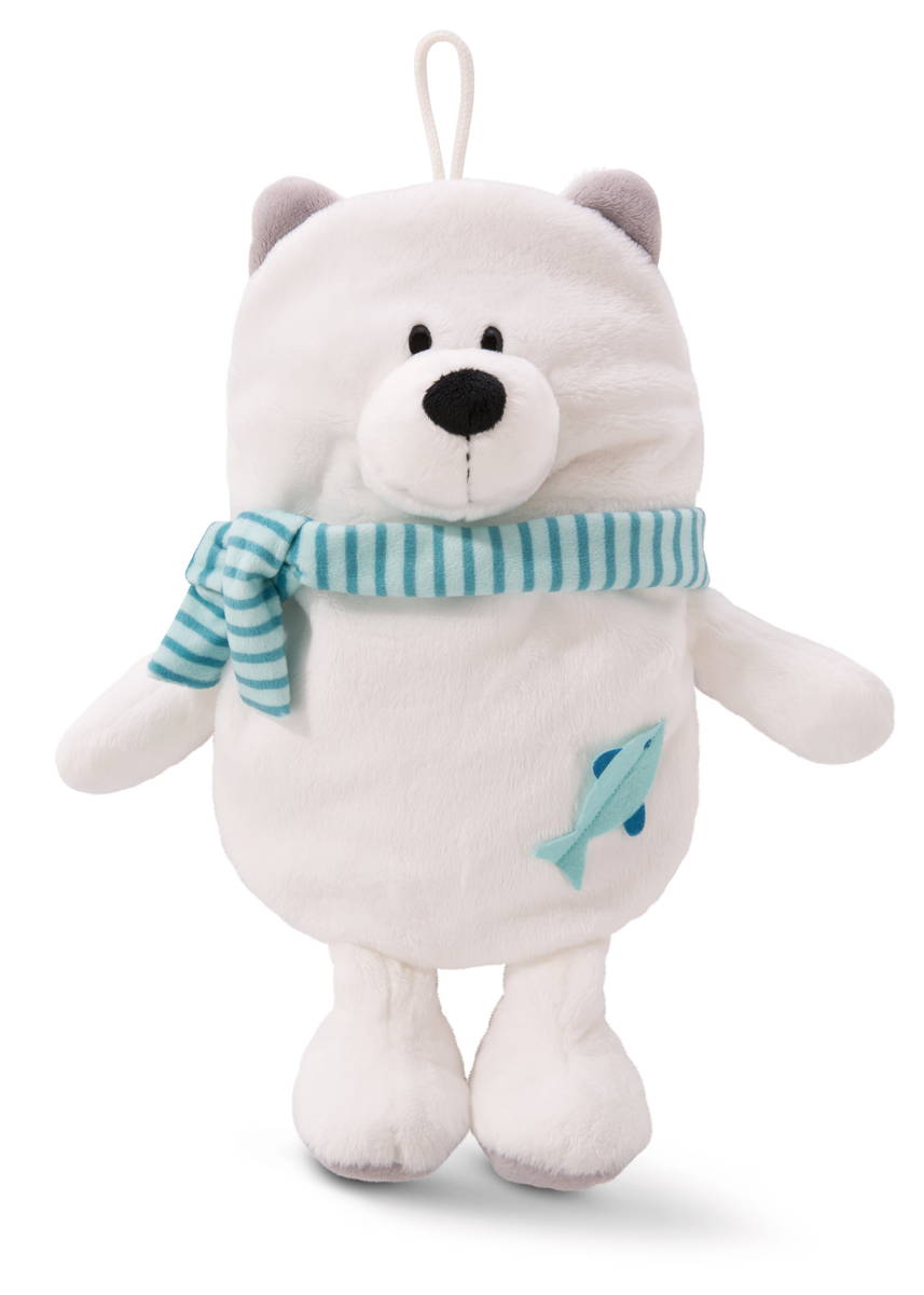 Ob als kleiner Tröster bei Bauchweh oder einfach nur zum Knuddeln: die niedliche, figürliche Eisbären-Wärmflasche im kuscheligen Plüschkörper ist vielseitig einsetzbar. Die herausnehmbare Wärmflasche mit 350 ml Inhaltsvolumen kann im Handumdrehen mit heissem Wasser befüllt werden. Wird die Wärmflasche nicht mehr benötigt, kann sie mithilfe der Schlaufe am Kopf des knuffigen Plüschies weggehängt werden.