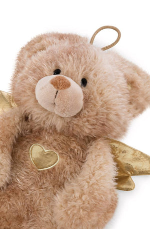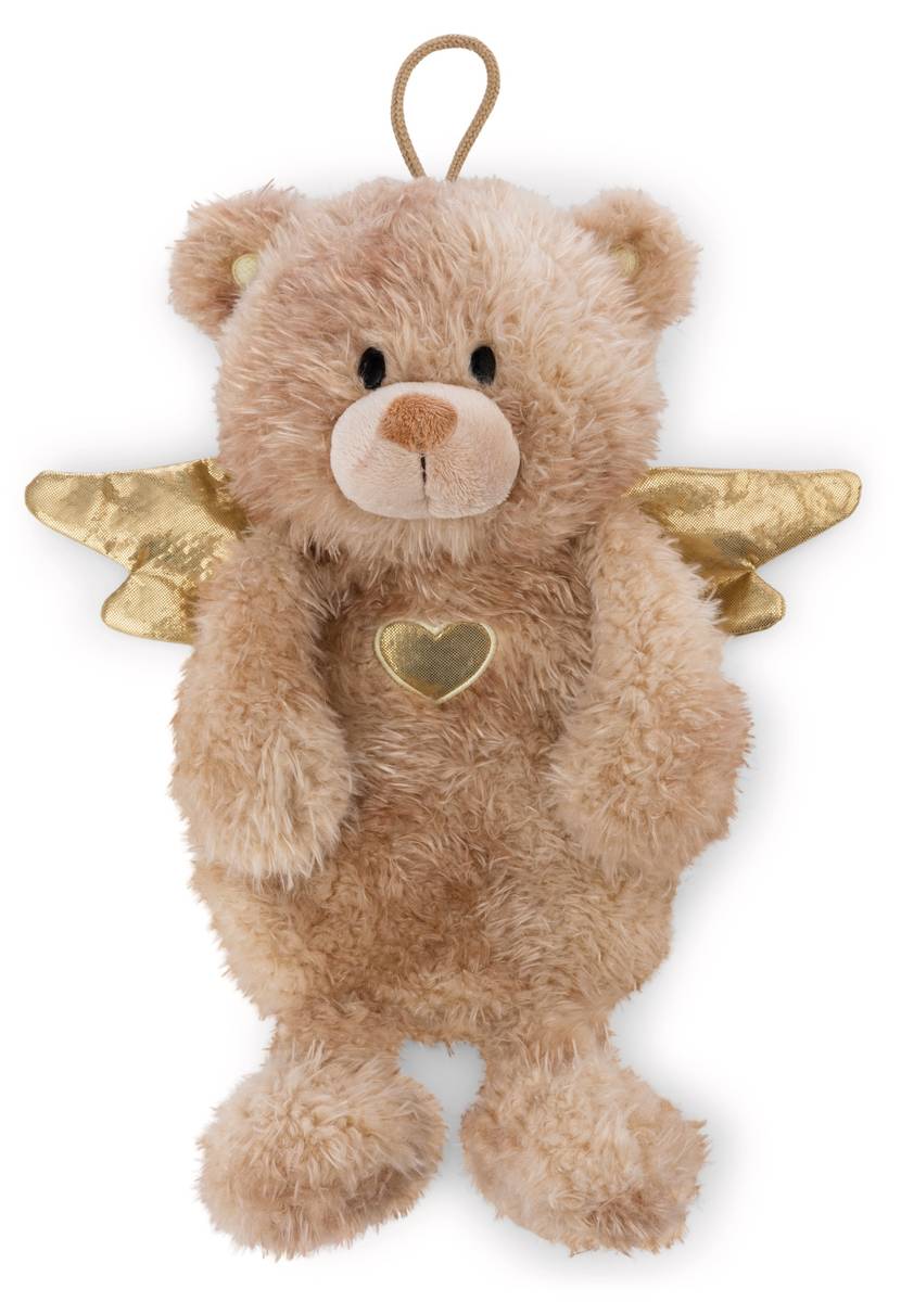 Die Wärmflasche Bär La La Bearie ist nicht nur praktisch, sondern wird schnell zum unentbehrlichen Begleiter, der Wärme, Behaglichkeit und ein Stück Geborgenheit spendet. Ein herzerwärmendes Geschenk für Frostbeulen und Eisprinzessinnen jeden Alters. Mit einem Fassungsvermögen von 350ml bietet sie ausreichend Wärme für gemütliche Stunden im Bett oder auf der Couch. Der Plüschbezug in Gestalt des Schutzengel Bärchens La La Bearie verleiht der Wärmflasche einen niedlichen und verspielten Look. Das flauschige, braunmarmorierte Plüschfell, die goldenen Flügelchen und ein Herz am rechten Fleck sorgen nicht nur für ein angenehmes Gefühl auf der Haut, sondern machen die Wärmflasche auch zu einem dekorativen Accessoire. Dank der praktischen Hängeschlaufe kann die Wärmflasche ganz einfach an einem Haken oder Türgriff aufgehängt werden und ist so immer griffbereit. Die Wärmflasche ist Teil der NICI GREEN Produktwelt. Für NICI GREEN Produkte verwenden wir fast ausschliesslich Plüsch- und Füllstoffe, die aus recycelten Materialien bestehen. Hierfür werden vor allem alte PET-Flaschen zu RPET verarbeitet.