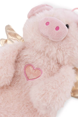 Die Wärmflasche Schwein La La Piggie ist nicht nur praktisch, sondern wird schnell zum unentbehrlichen Begleiter, der Wärme, Behaglichkeit und ein Stück Geborgenheit spendet. Ein herzerwärmendes Geschenk für Frostbeulen und Eisprinzessinnen jeden Alters. Mit einem Fassungsvermögen von 350ml bietet sie ausreichend Wärme für gemütliche Stunden im Bett oder auf der Couch. Der Plüschbezug in Gestalt des Schutzengel Schweinchens La La Piggie verleiht der Wärmflasche einen niedlichen und verspielten Look. Das flauschige, rosafarbene Plüschfell, die goldenen Flügelchen und ein pinkglänzendes Herz am rechten Fleck sorgen nicht nur für ein angenehmes Gefühl auf der Haut, sondern machen die Wärmflasche auch zu einem dekorativen Accessoire. Dank der praktischen Hängeschlaufe kann die Wärmflasche ganz einfach an einem Haken oder Türgriff aufgehängt werden und ist so immer griffbereit. Die Wärmflasche ist Teil der NICI GREEN Produktwelt. Für NICI GREEN Produkte verwenden wir fast ausschliesslich Plüsch- und Füllstoffe, die aus recycelten Materialien bestehen. Hierfür werden vor allem alte PET-Flaschen zu RPET verarbeitet.